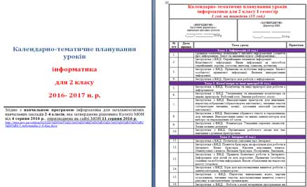 Календарно - тематичне планування інформатика 2 клас за новою програмою 2016 року
